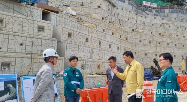 이날 현장을 찾은 민기식 권한대행은 관계 공무원과 현장소장으로부터 공정 상황을 보고받고, 옹벽 등 주요 구조물의 시공 상태와 배수 체계를 면밀히 살피며, 공사 과정에서 발생할 수 있는 주민 불편 사항을 최소화할 것을 당부했다.