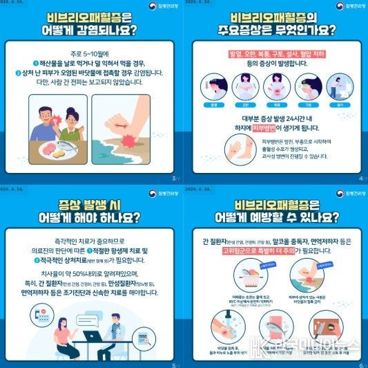 정광선 전남도 보건복지국장은 “전남은 전국에서 해안지역이 가장 많아 감염 위험이 상존하므로 간질환, 당뇨 등 기저질환이 있는 환자는 어패류를 끓여먹고, 피부 상처가 있는 사람은 바닷물 접촉을 삼가는 등 각별한 주의를 기울여야 한다”고 당부했다.