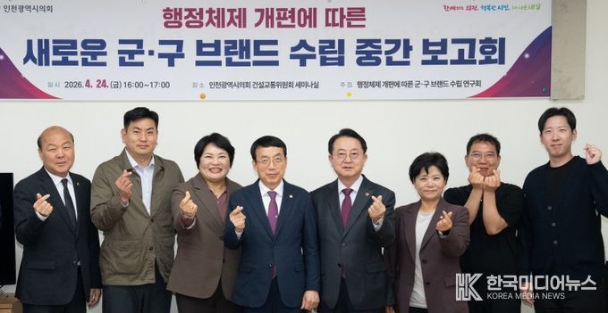 [ 한국미디어뉴스 이원영 기자 ] 인천광역시의회 ‘행정체제 개편에 따른 군·구 브랜드 수립 연구회(대표의원 허식)’는 최근 시의회 건설교통위원회 세미나실에서 새로운 군ㆍ구 브랜드 수립을 위한 연구용역 중간보고회를 개최했다고 28일 밝혔다.