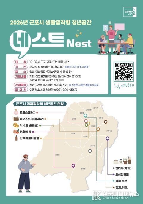 군포시 관계자는 “이번 협약을 계기로 민관 협력 청년생태계가 활성화될 수 있도록 더욱 노력하겠다”며 “청년공간 네스트를 통해 청년들이 자신만의 꿈을 향해 비상할 수 있도록 지원을 아끼지 않겠다”고 밝혔다.