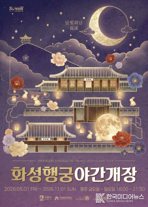 [ 한국미디어뉴스 김일규 기자 ] 화성행궁 야간개장 ‘달빛화담, 花談’이 5월 1일 시작된다. 11월 1일까지 매주 금·토·일요일에는 저녁 9시 30분까지 화성행궁을 관람할 수 있다.