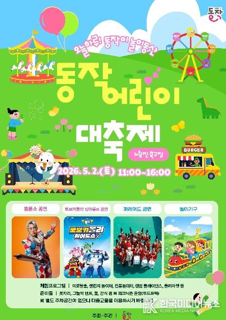 [ 한국미디어뉴스 이보영 기자 ] 동작구가 어린이날을 맞아 어린이와 가족이 함께 즐기는 ‘2026 동작어린이대축제’를 개최한다고 밝혔다.