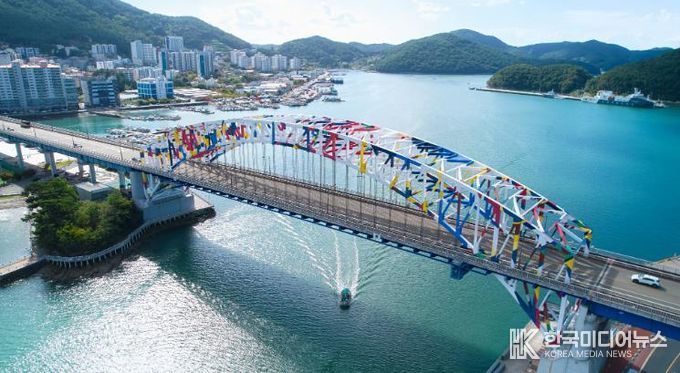 통영시는 고 전혁림 화백의 작품 ‘풍어제’를 통영대교 아치에 입혀, 통영대교를 바다 위 예술작품이자 도심 속 열린 미술관으로 새롭게 단장했다.