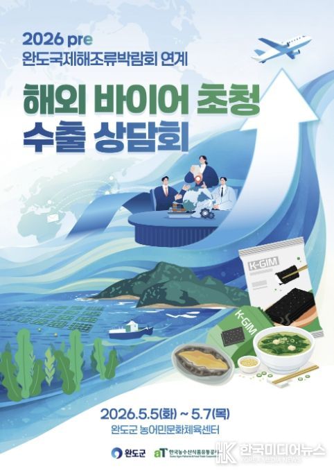 [ 한국미디어뉴스 이종철 기자 ] 완도군이 ‘2026 Pre 완도국제해조류박람회’ 기간 중 해외 바이어 초청 수출 상담회를 연다.