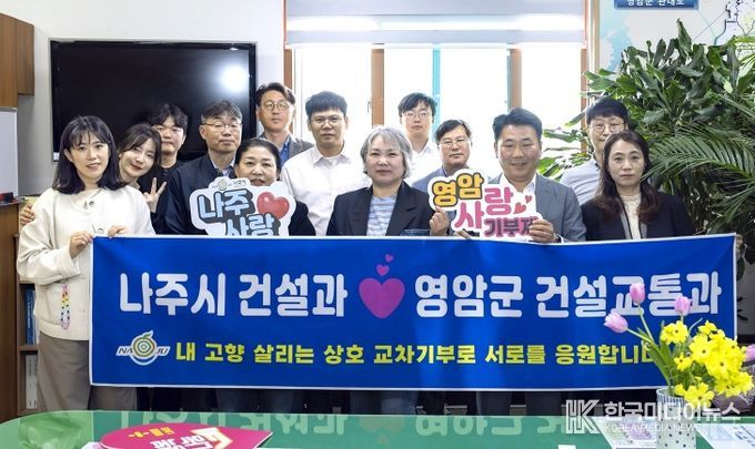 [ 한국미디어뉴스 이종철 기자 ] 전남 나주시 건설과와 영암군 건설교통과는 고향사랑기부제 활성화와 지역 간 상생협력을 위해 지난 28일 ‘2026 고향사랑기부제 상호 교차 기부’ 행사를 가졌다고 29일 밝혔다.