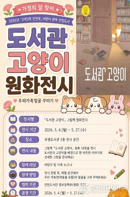 [ 한국미디어뉴스 이원영 기자 ] 인천광역시교육청부평도서관은 5월 4일부터 27일까지 가족이 함께 즐길 수 있는 '도서관 고양이' 그림책 원화 전시를 운영한다.