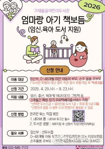 지원 도서는 임신·육아 정보서, 태교 동화, 아기 그림책으로 구성되어 있으며 신청 도서와 함께 인천 서구보건소의 ‘임신·출산 및 영유아 건강관리 지원’ 정보가 담긴 안내 리플렛을 함께 제공한다.