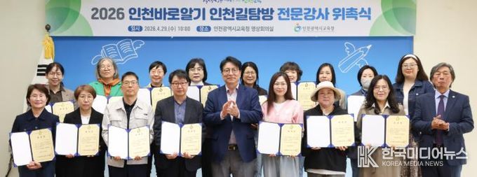 [ 한국미디어뉴스 이원영 기자 ] 인천광역시교육청은 29일 인천바로알기 관계자 30여 명을 대상으로 ‘2026 인천바로알기 인천길탐방 전문강사 위촉식’을 개최했다.