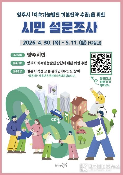 [ 한국미디어뉴스 김서안 기자 ] 양주시는 ‘지속가능발전 기본전략 및 추진계획’ 수립을 위해 시민 의견을 수렴하는 설문조사를 실시한다.