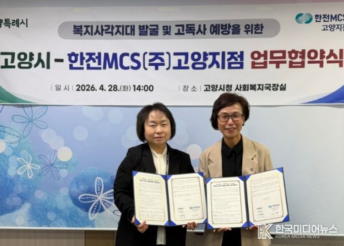 [ 한국미디어뉴스 기자 ] 고양특례시는 지난 28일 시청 사회복지국장실에서 한전MCS(주) 고양지점과 위기가구 발굴 및 지원을 위한 ‘온(溫)마음 복지스위치 ON’ 업무협약을 체결했다.