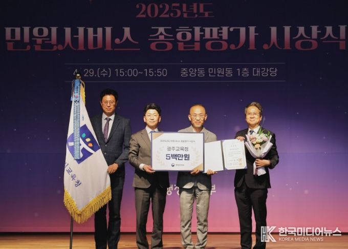 [ 한국미디어뉴스 이종철 기자 ] 광주시교육청이 행정안전부에서 시행한 ‘2025년 민원서비스 종합평가’에서 전국 시·도교육청 1위를 달성했다.