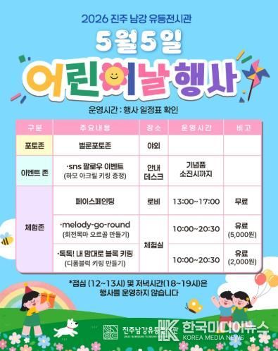 진주시 관계자는 “5월 가정의 달과 어린이날을 맞아 아이들과 가족이 함께할 수 있는 다양한 체험과 전시 프로그램을 준비했다”라며“앞으로도 지속적으로 콘텐츠를 개발해 전 세대가 함께 보고 즐기고 느낄 수 있는 복합문화공간으로 발전시켜 나가겠다”라고 밝혔다.