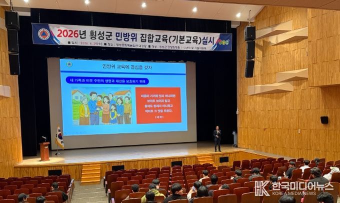 [ 한국미디어뉴스 이원영 기자 ] 횡성군이 민방위 대원의 재난 대응 역량 강화를 위해 4월 29일 횡성문화예술회관 대강당에서 ‘2026년 민방위 집합교육’을 실시한다고 밝혔다.