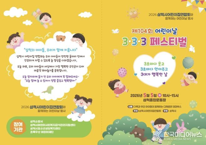 [ 한국미디어뉴스 이원영 기자 ] 삼척시는 제104회 어린이날을 맞아 어린이와 가족이 함께 즐길 수 있는 행사들을 개최한다고 밝혔다.