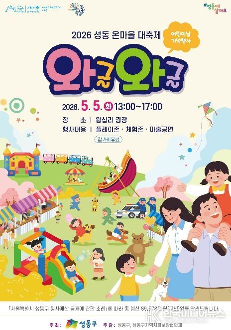 [ 한국미디어뉴스 이원영 기자 ] 서울 성동구는 제104회 어린이날을 맞아 오는 5월 5일 왕십리광장에서 성동 온마을 대축제 ‘와글와글’을 개최한다고 밝혔다.