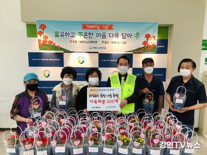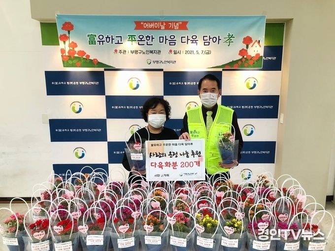 [ 경인TV뉴스 이원영 기자 ] 인천 부평구노인복지관(관장: 최민수)는 5월 가정의 달 및 스승의 날 행사에 사용할 ‘다육 꽃 화분’ 200개를 이안플라워(대표:정미경)로부터 기증 받았다고 밝혔다.