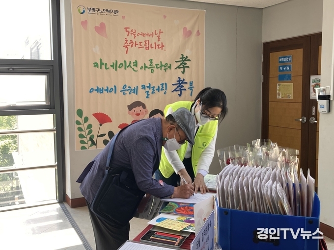 이날 ‘어버이 은혜 컬러링 孝북’은 부평구에 거주하면서 프로그램 참여 의사가 있는 어르신 200명을 대상으로 세대 간에 어버이 은혜를 다시 한 번 생각하게하며 서로에게 감사와 사랑하는 마음을 담도록 전달한다.