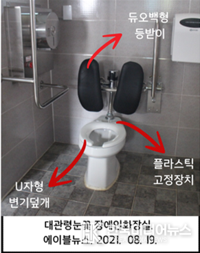 [ 한국미디어뉴스 이원영 기자 ] 장애인·노인·임산부 등의 편의증진 보장에 관한 법률 및 시행규칙 등에 따라 장애인 화장실은 편의시설의 구조·재질 등을 규격에 맞게 설치해야 한다. 그러나 화장실에서 가장 많이 이용하는 변기 덮개와 등받이에 관한 규정은 없어 장애인의 불편함이 가중되고 있다.