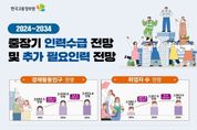 [ 한국미디어뉴스 이원영 기자 ] 한국고용정보원(원장 이창수)은 '중장기 인력수급 전망'을 통해 향후 10년간 우리나라 노동시장의 인력공급(경제활동인구)과 인력수요(취업자)가 구조적으로 전환되는 양상을 전망하고, 향후 지속적인 성장을 위해 추가로 필요한 인력을 추계했다. 1.중장기 인력수급 전망(2024~2034) 주요 전망 결과를 보면, 15세 이상 인구 증가 폭은 과거에 비해 크게 둔화되고, 경제활동인구는 2030년부터는 본격적인 감소세로 전환될 것으로 나타났다. 저출생·고령화의 영향으로 생산가능인구(15~64세)는 지속적으로 감소하는 반면, 65세 이상 고령층 비중은 2034년 31.7%까지 확대되면서 노동 공급의 구조적 제약이 본격화될 전망이다. 이로 인해 15세 이상 전체 경제활동참가율은 전망 전기(‘24~’29년)에 감소 전환하는 반면, 고령층과 여성의 경제활동참가율은 점진적으로 상승할 것으로 예상되어, 노동시장 내 고령화 심화와 인력 구성의 질적 변화가 동시에 진행될 것으로 보인다. 2024년~2034년까지 취업자 수는 6.4만 명 증가하겠으며, 노동공급 제약의 영향으로