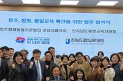 [ 한국미디어뉴스 이종철 기자 ] 민주평화통일자문회의 광양시협의회(회장 박노신)는 2월 9일 오후 1시 전라남도광양교육지원청과 ‘민주·평화·통일교육 확산을 위한 업무협약’을 체결했다. 이날 협약식에는 양 기관 관계자와 자문위원 등 50여 명이 참석해 미래세대를 위한 민주·평화·통일교육의 방향을 공유하고, 실질적인 협력 방안을 논의했다. 이번 협약은 관내 초·중·고 학생과 교육공동체를 대상으로 학교 교육과정과 연계한 민주·평화·통일교육을 체계적으로 추진하기 위해 마련됐다. 특히 이번 협약은 미래세대를 위한 가치교육을 함께 책임지겠다는 공동의 약속이라는 점에서 의미가 크다. 이를 통해 지역사회와 학교가 연계된 지속 가능한 민주·평화·통일교육 협력 체계를 구축하는 계기가 될 것으로 기대된다. 박노신 회장은 “민주주의와 평화통일의 가치는 우리 사회의 미래와 아이들의 삶에 중요한 영향을 미친다”며 “학교 현장과의 긴밀한 협력을 통해 학생들이 민주주의와 평화의 의미를 생활 속에서 체득할 수 있도록 적극 지원하겠다”고 밝혔다. 김여선 교육장은 “민주·평화·통일교육의 실효성을 높이기 위