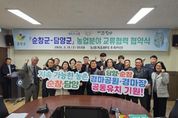 [ 한국미디어뉴스 이종철 기자 ] 담양군과 전북특별자치도 순창군이 지난 11일 순창군농업기술센터에서 농업인 단체 대표와 관계자 등 18명이 참석한 가운데 ‘농업 분야 5개 단체 교류 협력 협약’을 맺었다. 이번 협약은 인접한 두 지자체가 농업 기술을 공유하고 기후 위기와 농촌 고령화 등 공통 현안에 공동으로 대응하기 위해 마련했다. 협약에는 양 지역 농업을 이끌어가는 선도 단체인 농촌지도자회, 생활개선회, 4-H회, 4-H본부, 농업경영인회가 참여했다. 주요 협약 내용은 ▲군민의 날·축제 등 행사 교류 ▲지역 농특산물 홍보 및 판매 ▲지속 가능한 농업 기술 교류 ▲경마공원 공동 유치 협력 ▲고향사랑 상호 기부 등으로, 양측은 인적·물적 교류를 통해 함께 ‘부자 농촌’을 만들어가기로 약속했다. 특히 이날 행사에서는 협약서 낭독에 이어 ‘경마공원 공동 유치’를 염원하는 퍼포먼스를 함께하며, 참석자들은 경마공원 유치가 양 지역의 경제 활성화와 관광 산업 발전에 획기적인 전환점이 될 것이라는 데 뜻을 모았다. 순창군 관계자는 “전남과 전북을 대표하는 두 농업 도시가 손을 맞잡은 만큼, 현