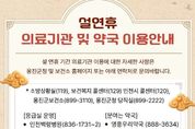 [ 한국미디어뉴스 이원영 기자 ] 옹진군은 설 연휴 기간인 2월 14일부터 2월 18일까지 5일간, 의료공백을 최소화하고 응급환자 발생에 신속히 대응하기 위해 '설 연휴 응급진료체계'를 운영한다고 밝혔다. 군은 연휴 기간 중 보건소 내 ‘응급진료상황실’을 설치·운영하고, 지역응급의료기관을 중심으로 24시간 비상진료체계를 유지한다. 특히 연육되지 않은 도서지역 특성을 고려하여 보건지소·보건진료소와 유관기관 간 긴밀한 협력체계를 유지할 방침이다. 보건소는 연휴 기간 응급환자 발생 상황을 총괄 관리하며, 관내 보건지소 8개소와 보건진료소 11개소는 응급환자 진료 및 이송을 지원한다. 휴진이 발생할 경우 관할 보건지소 및 유관기관과 연계한 응급환자 이송체계를 가동해 업무 공백을 최소화할 계획이다. 또한, 백령병원(인천광역시의료원 백령병원)은 지역응급의료기관으로서 24시간 비상진료체계를 유지하며, 문 여는 병·의원 및 약국 7개소도 연휴 기간 주민 진료 편의를 지원한다. 군은 재난 및 다수사상자 발생 상황에도 대비해 119 등 관계기관과 협력체계를 유지하고, 신속 대응이 가능하도