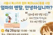[ 한국미디어뉴스 이보영 기자 ] 서울 은평구는 오는 26일 부모의 마음을 돌보고 건강한 양육 방향을 제시하는 프로그램 ‘엄마의 멘탈, 안녕하십니까?’를 운영한다고 밝혔다. 이번 프로그램은 은평구립도서관이 서울시 북스타트 ‘엄마 북(Book)돋움’ 사업과 연계해 부모가 양육의 의미를 되짚어볼 수 있도록 마련됐다. 프로그램은 ▲완벽하지 않아도 괜찮은 부모 ▲기다림의 양육 ▲넘어져도 다시 일어서는 아이로 키우기 ▲나를 잃지 않는 육아 등으로 구성됐으며, 양육 과정에서의 불안을 완화하고 정서적 회복을 지원하는 내용으로 진행될 예정이다. 은평구립도서관 관계자는 “부모가 자신의 마음을 돌아보고 서로의 경험을 나누는 시간이 되길 바란다”며 “잠시 멈춰 서서 스스로를 돌보는 계기가 되기를 기대한다”고 말했다. 신청 대상은 영유아 및 초등 자녀를 둔 부모 20명이며, 4월 26일 은평구립도서관에서 약 90분간 진행된다. 접수는 4월 10일부터 은평구립도서관 누리집 ‘문화행사 신청’에서 가능하다.