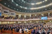 [ 한국미디어뉴스 이원영 기자 ] 이재명 대통령과 김혜경 여사는 오늘 오후 여의도순복음교회에서 열린 ‘2026 한국교회 부활절 연합예배’에 참석해 부활의 의미를 되새기며 함께 예배를 드렸다. 이번 부활절 연합예배는 총 73개 교단, 7천여 명이 함께 참여한 뜻깊은 행사이다. '부활! 평화! 사랑'이라는 주제 아래, ‘생명의 부활, 한반도 평화’(요한복음 20장 19-23절)를 표어로 삼아 열렸다. 예배는 2026 부활절연합예배준비위원회 대회장인 이영훈 여의도순복음교회 담임목사의 대회사로 시작해 ▲대표기도 ▲성경봉독 ▲설교 ▲특별기도 ▲통성기도 ▲축도 순으로 진행됐다. 이재명 대통령은 축사를 통해 “해마다 개최되는 부활절 연합예배는 우리 사회에 사랑과 희망의 메시지를 전해 왔다”면서 “늘 나라와 국민을 위해 기도해 주시는 한국교회와 성도 여러분께 국민을 대표해서 감사드린다”고 전했다. 이어 “세계를 지탱해오던 평화와 번영의 질서가 약화되고, 연대와 화합이 아닌 갈등과 다툼이 심화되고 있다”면서 “이럴 때일수록 부활의 의미와 함께 오늘의 주제인 평화, 사랑의 의미를 다시 깊이 되새겨야 할 것”이라고