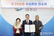 [ 한국미디어뉴스 이원영 기자 ] 여주시는 지난 2일 6‧25전쟁 무공훈장 전수식을 개최하고, 故이석만 상사의 공적을 기리며 화랑무공훈장을 유가족에게 전수했다. 이번 전수식은 국방부가 추진 중인 ‘6‧25전쟁 무공훈장 찾아주기 사업’의 일환으로, 전쟁 당시 서훈이 결정됐으나 긴박한 전투 상황 등으로 인해 전달되지 못한 훈장을 여주시와의 협업을 통해 고인의 무공훈장 수훈 사실을 재확인하고, 오랜 기간 훈장을 받지 못한 유가족에게 전달하기 위해 마련됐다. 이날 행사에는 고인의 자녀인 이흥원씨가 참석해 훈장을 대신 수여받았으며, 가족과 함께 고인의 숭고한 희생과 헌신을 기리는 뜻깊은 시간을 가졌다. 故이석만 상사는 1948년 12월 입대해 1951년 4월에 제대했다. 특히, 6‧25전쟁 당시 대구지구 팔공산 전투에서 수공을 세우는 등 국가 수호에 크게 기여한 공로가 인정됐다. 여주시는 이번 전수식을 통해 국가를 위해 헌신한 참전유공자의 명예를 되찾고, 그 숭고한 희생정신을 지역사회에 널리 알리는 계기를 마련했다. 이충우 여주시장은 “국가를 위해 헌신하신 분의 공훈을 늦게나마 기리고 유가족께