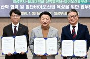 [ 한국미디어뉴스 김서안 기자 ] 의정부시가 경기북부 첨단 바이오산업의 메카로 거듭나기 위해 대학, 기업과 함께 강력한 지산학 협력 체계를 구축한다. 의정부시는 1월 30일 시청 회룡홀에서 을지대학교 산학협력단(단장 김인식), ㈜바이오간솔루션(대표 송명석)과 ‘지산학 협력 및 첨단 바이오산업 육성을 위한 업무협약’을 체결했다. 이번 협약은 관내 유치 기업인 ㈜바이오간솔루션의 안정적인 연구 공간 확보와 정착을 지원하고, 대학의 연구 인프라와 기업의 유전자 기반 원천기술을 결합해 의정부시를 글로벌 바이오산업 거점으로 조성하기 위해 마련됐다. 협약에 따라 세 기관은 ▲산학협력 기반 공동 연구과제 발굴 및 수행 ▲연구‧기술 교류를 통한 바이오산업 경쟁력 강화 ▲기업 투자 확대 및 사업 확장을 위한 행정적 지원 ▲기타 상호 발전을 위한 협력사항 등을 공동으로 추진하기로 했다. 또한, ▲시는 인프라 구축과 행정 지원을 맡고 ▲을지대학교 산학협력단은 실험 공간과 연구 장비의 공동 활용, 임상‧기초의학 기반 공동연구를 담당하며 ▲바이오간솔루션은 연구과제 발굴과 기술 상용화 등을 통해 지역사회 기여에 나선다. &