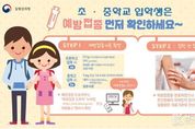 [ 한국미디어뉴스 김풍옥 기자 ] 옥천군은 3월에 입학하는 초·중학교 학생들의 감염병 예방과 건강 보호를 위해 필수예방접종 여부를 확인하여, 미접종자는 보건소 또는 위탁의료기관에서 접종을 완료하고 입학할 것을 독려했다. 이번 사업은 학생들의 건강한 학교생활을 지원하고 집단 면역 효과를 높이기 위해 추진되며, 사업 기간은 1월부터 6월까지이디. 대상자는 올해 초등학교 입학생 2019년생, 중학교 입학생 2013년생이다. 입학생의 예방접종 완료 여부는 질병관리청 ‘예방접종도우미에서 확인할 수 있으며, 확인 결과 미접종 항목이 있을 경우 보건소 또는 관내 위탁의료기관에서 무료로 접종을 받을 수 있다. 초등학교 입학생은 4~6세 예방접종인 ▲DTaP(디프테리아·파상풍·백일해) 5차 ▲폴리오(소아마비) 4차 ▲MMR(홍역·유행성이하선염·풍진) 2차 ▲일본뇌염 불활성화 백신 4차(또는 약독화 생백신 2차) 등 4종에 대해 접종 완료 여부를 확인해야 하며, 중학교 입학생은 11~12세 예방접종인 ▲Tdap(파상풍·디프테리아·백일해) 또는 Td(파상풍·디프테리아) 6차 ▲일본뇌염 불활성화 백신 5차