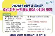 [ 한국미디어뉴스 김풍옥 기자 ] 음성군은 2026년 상반기 여성회관 능력개발교실 수강생을 모집한다. 이번 교육은 오는 3월 6일부터 12주간 진행되며 △재봉틀반 △라인댄스 △라떼아트 △바리스타자격증반 △떡 만들기 △헤어커트 △프랑스 자수 △민화 등 주·야간 총 14강좌로 구성돼 있다. 접수는 2월 9일부터 25일까지 선착순으로 이뤄지며, 음성군민 여성·남성 누구나 신청할 수 있다. 수강 희망자는 접수 기간 내 신분증을 지참하고 음성군 여성회관(2층)을 방문해 신청하면 된다. 수강료는 12주 기준 3만원으로 수강 신청 시 현금 납부이며 재료비는 개인 부담이다. 군 관계자는 “유익한 학습 경험을 통해 군민들의 삶의 질을 높일 수 있도록 최선을 다하겠다”며 “군민들의 수요를 반영한 특별 강좌에 많은 군민이 관심을 두고 참여하길 기대한다”고 말했다.