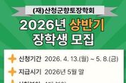 [ 한국미디어뉴스 김홍철 기자 ] (재)산청군향토장학회는 오는 13일부터 5월 8일까지 ‘2026년도 상반기 장학금’을 신청받는다고 10일 밝혔다. 총 4개 분야로 이뤄진 이번 장학금은 300명을 대상으로 △고교입학 장학금(1인당 100만원) △초중고 생활장학금(1인당 50만원) △대학 입학 생활장학금(1인당 265만원) △대학 재학 생활장학금(1인당 200만원) 등 4억 7100만원 규모다. 신청은 산청군 홈페이지에 게시된 신청서와 제출서류를 작성해 학교나 읍면사무소에서 하면 된다. 단 신청자가 많을 시 지원 규모 내에서 균등 지급할 계획이다. 자세한 사항은 군청 홈페이지를 참조하거나 산청군 평생교육담당로 문의하면 된다. 한편 산청군향토장학회는 지난 1999년부터 지역인재 육성과 우수 학생 유입을 위한 다양한 장학사업을 펼쳐오고 있다. 지난해에는 지역 내 초중고 학생과 대학생 등 680명에게 7억 9000만원의 장학금을 지원한 바 있다.