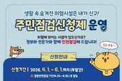 [ 한국미디어뉴스 김홍철 기자 ] 고성군은 2026년 집중안전점검 기간(4월 20일~6월 19일) 동안 군민이 직접 참여하는'2026년 집중안전점검 주민점검신청제'를 운영한다고 밝혔다. '주민점검신청제'는 집중안전점검 과정에 군민이 직접 생활 속 위험요소를 조기에 발굴하여 점검신청을 할 수 있도록 마련됐으며, 안전점검이 필요한 시설물 등에 대하여 군민의 의격을 적극 수렴하여 사각지대 해소를 위한 제도이다. 특히 올해는 전년도보다 한층 더 활성화하여 안전취약계층 및 민생중심시설 등을 중점으로 추진하여 예방 중심의 안전관리체계를 강화하는 데 가장 큰 목적을 두고 있으며, 군민들의 적극적인 참여를 통해 생활 속 안전 사각지대를 해소하고 행정과 군민이 함께 만들어가는 예방 중심의 안전관리체계를 강화할 방침이다. 점검대상은 △공장시설 △공동주택 △숙박시설 △다중이용시설 △체육시설 등 행정안전부에서 지정한 20종 시설유형과 안전취약계층 및 민생중심시설 등으로 사회적 관심에 발맞추고 실생활과 밀접한 다양한 시설이 해당된다. 군민들은 읍면사무소를 방문하거나 안전신문고 앱, 포털을 통해 점검 시설물을 신청할 수