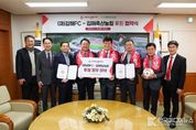 [ 한국미디어뉴스 김홍철 기자 ] 김해FC가 김해축협과 손을 잡고 2026시즌의 힘찬 레이스를 시작한다. 김해FC는 31일 오전 10시 김해시청에서 구단주 홍태용 김해시장과 김해축협 송태영 조합장이 참석한 가운데 공식 후원 협약식을 개최했다. 김해축협은 ‘천하1품’ 한우와 ‘산들에참포크’ 등 장관상을 휩쓴 명품 브랜드를 가진 국내 축산업 발전의 선두주자로 국민 건강을 책임지고 있는 지역 대표 금융·축산 기관이다. 이번 협약은 김해축협의 새 슬로건인 ‘든든한 축산 동반자, 김해축협’ 정신을 바탕으로 지역 상생의 의미가 크다. 김해축협은 김해FC의 공식 파트너로서 구단의 안정적인 운영을 돕고, 김해FC는 경기력을 통해 김해축협의 브랜드 가치를 높이는 ‘윈-윈(Win-Win)’ 전략을 펼친다. 송태영 조합장은 “우리 시 첫 프로축구단의 탄생에 시민들의 기대가 큰 만큼, 팬들의 뜨거운 열기에 부응하기 위해 지원을 결심했다”며“김해축협이 그 여정에 동행하게 되어 기쁘고 앞으로 김해FC가 승승장구할 수 있도록 아낌없는 응원과 지원을 이어가겠다”고 말했다. 홍태용 시장은 “김해축협은 우리 시가 축산업 도시로