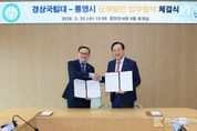 [ 한국미디어뉴스 김홍철 기자 ] 통영시는 경상국립대학교(총장 권진회)와 함께 지역 유일의 대학인 해양과학대학의 교육·연구 기반 강화와 운영 활성화를 위해 경상국립대학교 가좌캠퍼스 중앙도서관 6층 회의실에서 ‘통영시·경상국립대학교 상생발전을 위한 업무협약’을 25일 체결했다. 이날 협약식은 천영기 통영시장, 권진회 경상국립대총장, 문성주 해양과학대학장을 비롯해 통영시와 경상국립대학교의 주요 간부급 인사들이 대거 참석한 가운데, ▲식전 차담 ▲홍보영상 상영 ▲기관장 인사 말씀 ▲업무협약 서명 ▲기념촬영 순으로 진행됐다. 이번 협약은 해양과학대학의 교육·연구 기능 등을 강화해 지역사회를 활성화하고, 대학 인근 상권 침체 등 지역의 위기를 선제적으로 극복하기 위해 마련됐다. 주요 내용으로는 ▲해양과학대학 주변 정주환경 개선을 위한 ‘협력 플랫폼’ 구축·운영 ▲대학 시설물을 활용한 체류형 교육과정 개설 및 지역 연계 비교과 프로그램 공동 운영 ▲교육특구사업과 연계한 해양레저 교육 인프라 구축 및 교육프로그램 공동 추진 ▲통영지역 중점산업과 연계한 외국인 유학생·연수생 및 각종 행사 유치를 통한 대학 경쟁력 강화와 지