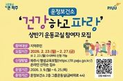 [ 한국미디어뉴스 민경환 기자 ] 파주시 운정보건소는 지역 주민의 건강 증진과 신체활동 실천을 돕기 위해 2026년 상반기 ‘순환 운동교실’과 ‘그룹 운동교실’참여자를 모집한다. 순환 운동교실 ‘혈관 튼튼·심뇌 튼튼’은 ‘에어보드’와 근력 강화(웨이트) 장비를 활용한 유산소·근력·스트레칭 복합 운동으로 구성된다. 건강반(65세 이상)은 월·수요일, 튼튼반(65세 미만)은 화·목요일에 주 2회 운영되며, 모집 기간은 2월 19일부터 25일까지이며, 3월 3일부터 6월 18일까지 운정보건소 2층 그룹운동실에서 진행된다. 그룹 운동교실 ‘건강하고파랑’은 어르신과 성인을 위한 다양한 프로그램을 운영한다. 어르신 대상 라인댄스와 훌라댄스, 성인 대상 건강요가, 줌바댄스, 근력운동 등 총 6개 반으로 구성되며, 모집 기간은 2월 23일부터 27일까지이고, 운영 기간은 3월 9일부터 6월 25일까지다. 신청은 파주시 평생교육포털을 통한 온라인 선착순 접수로 진행되며, 중복 수강은 불가하다. 정영숙 운정보건소장은 “이번 상반기 운동교실은 시민의 신체활동 기회를 확대하고, 규칙적인 운동을 통해 건강한 생활습관을