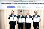 [ 한국미디어뉴스 이종철 기자 ] 전라남도는 10일 한국전력공사 회의실에서 한국전력, 한국농어촌공사, 영산강유역환경청과 공공 주도 재생에너지 발전단지 조성과 안정적 전력 공급을 위한 업무협약을 했다. 협약식에는 강위원 전남도 경제부지사, 김동철 한국전력 사장, 김인중 한국농어촌공사 사장, 김영식 영산강유역환경청장 직무대리 등 관계자가 참석했다. 협약은 기존 민간 주도 개발 방식에서 벗어나 입지 발굴부터 계통 연계, 환경 보전, 주민 수용성 확보까지 모든 과정에서 공공기관이 협력해 재생에너지 발전단지를 조성하기 위한 것이다. 전남도는 사업 발굴과 계획 수립, 주민 수용성 확보 등 행정 지원을 맡고, 영산강유역환경청은 규제와 제도 개선 지원, 환경성을 고려한 전력망 확충 지원 등에 나서며, 한국전력은 재생에너지 안정적 공급을 위한 변전소와 송전선로 적기 건설을 추진하고, 한국농어촌공사는 농업기반시설을 활용한 단지 조성을 지원하는데 협력하기로 했다. 전남은 풍부한 재생에너지 자원을 보유하고 있음에도 계통 접속, 대규모 부지 확보, 환경성 검토 등 풀어야 할 과제가 많다. 또한 그동안 재생에너지 발전이