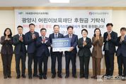 [ 한국미디어뉴스 이종철 기자 ] (재)광양시어린이보육재단은 12월 5일 광양시장, 재단 이사장, 기탁 기관 관계자 등 10여 명이 참석한 가운데 후원금 기탁식을 개최했다. 이번에 기탁된 후원금은 △한국가스안전공사(사장 박경국)의 300만 원이다. 박경국 한국가스안전공사 사장은 “아이들은 우리 사회의 미래이자 가장 소중한 자산”이라며 “아이들이 안전하고 행복하게 자랄 수 있는 지역사회를 만드는 데 힘을 보태고자 기탁하게 됐다. 어린이보육재단이 펼치는 따뜻한 보육사업이 더 많은 가정에 희망이 되길 바란다. 앞으로도 지역과 함께하는 나눔과 상생을 지속하겠다”고 밝혔다. 전인주 경영지원처장은 “이번 기탁은 직원 모두가 지역사회와 함께 성장하겠다는 마음을 담아 준비한 나눔”이라며 “재단의 다양한 사업이 아이들의 안전한 보육환경 조성과 부모의 양육 부담 완화에 의미 있게 사용되길 바란다”고 전했다. 시 관계자는 “우리 아이들을 위해 뜻깊은 나눔을 실천해 주신 한국가스안전공사에 깊이 감사드린다”며 “지역과 함께하는 공공기관의 진정성 있는 참여는 광양시가 ‘아이 키우기 좋은 도시’로 성장하고 아이