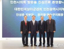 [ 한국미디어뉴스 이원영 기자 ] 인천광역시의회 정해권 의장(국·연수구1)은 11일 시의회를 방문한 대한민국상이군경회 안성윤 인천시지부장과 장익향 연수구지회장을 접견하고 환담을 나눴다. 이날 정해권 의장은 “국가를 위해 헌신하신 분들의 희생 위에 오늘의 대한민국이 존재한다”며 “국가유공자 예우 강화는 시민들이 국가유공자에게 품은 존경과 감사의 마음에서 비롯되는 만큼 인천시의회도 그 마음을 정책으로 실천하겠다”고 말했다. 그는 또 “인천시의회가 보훈가족의 명예를 높이고 예우를 강화하는 데 최선을 다하겠다”며 “인천시가 국가유공자와 보훈가족이 존중받는 도시로 자리매김할 수 있도록 적극 지원하겠다”고 덧붙였다. 이어 정 의장은 “앞으로도 인천시의회는 시민의 행복을 지키는 의회, 보훈을 존중하는 의회로 거듭나겠다”며 “국가유공자 여러분의 숭고한 정신이 우리 사회 전반에 넓게 퍼질 수 있도록 최선을 다하겠다”고 약속했다.