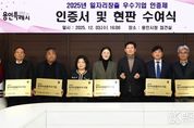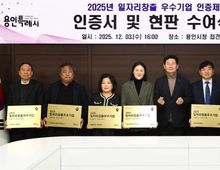 [ 한국미디어뉴스 이원영 기자 ] 용인특례시는 3일 본관 4층 전겹실에서 일자리 창출에 힘쓴 지역 우수기업 8곳에 인증서와 현판을 수여했다. 이번에 선정된 기업은 ▲아산디앤씨 주식회사 ▲일승푸드 제2공장 ▲주식회사 에이치에스씨 ▲㈜인실리코젠 ▲주식회사 홈체크 ▲㈜휴먼인텍 ▲케이제이건설산업(주) ▲트루션 등 총 8개사다. 시는 1차 서류심사와 2차 현장실사를 거쳐 일자리 창출 실적, 고용 안정성, 기업의 성장 가능성, 근로환경 등을 종합적으로 평가해 우수기업을 선정했다. 이들 기업은 최근 1년간 총 74명(기업당 4~19명)을 신규 채용해 지역 내 일자리 창출에 기여했다. 또, 다양한 직원복지제도로 근무하기 좋은 환경을 조성해 일자리의 질을 높이는 데 크게 힘쓴 것으로 평가됐다. 이들 기업에는 인증서와 현판이 수여되며, 시가 주최하는 일자리사업, 기업지원사업 참여 시 가점이 주어진다. 일자리박람회 등 채용 행사에도 우선적으로 참여할 수 있다. 용인특례시 일자리창출 우수기업 인증제는 2018년부터 시행되고 있으며, 매년 고용 확대와 일자리 창출에 기여한 기업을 발굴·지원하고