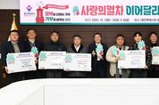 [ 한국미디어뉴스 이원영 기자 ] 2026년 붉은 말의 해, 용인특례시 사랑의 열차 이어달리기에 지역사회 따뜻한 나눔의 손길이 이어지고 있다. ‘사랑의 열차 이어달리기’는 용인의 대표 연말연시 이웃돕기 운동이다. 시는 지난해 12월 3일 시청 컨벤션홀에서 ‘희망 2026나눔캠페인 사랑의 온도탑제막식 및 사랑의 열차 이어달리기 발대식’을 열었다. ‘사랑의 열차 이어달리기’는 2월 6일까지 총 68일 동안 이웃돕기 성금 14억 원 모금을 목표로 이뤄진다. 삼성노블라이프 주식회사가 지난해 12월 23일 바자회 수익금 534만9000원을 기탁했다. 같은 날 에버찜질사우나는 성금 500만원을, ㈜토오텍 성금 200만원을, ㈜액션테크는 627만원 상당의 소화기 230대를 시에 기탁했다. 또 ㈜경자네식구들은 350만원 상당의 밀키트 1,000개를, 용인시 기업지원과는 성금 100만원을 전달했다. 수지구청 직장어린이집은 지난해 12월 29일 어려운 이웃에 전달해 달라며 라면 366개를 기탁했다. 이영애 원장은 “아이들이 직접 보고 느끼는 나눔의 기쁨을 통해 진짜 크리스마스의 의미를 느낄 수 있었을 것”이라고 했
