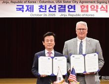 [ 한국미디어뉴스 이원영 기자 ] 진주시는 26일 진주시청 2층 시민홀에서 미국 조지아주 콜럼버스시와 국제 친선결연 협약을 체결했다고 밝혔다. 이날 협약식에는 조규일 진주시장, 스킵 헨더슨 콜럼버스 시장, 백승흥 진주시의회 의장, 김종욱 진주 K-기업가정신재단 회장, 스튜어트 레이필드 콜럼버스 주립대학교 총장, 미시 켄드릭 Choose Columbus 회장, 기업인 등 두 도시의 주요 인사 30여 명이 참석한 가운데 개최됐다. 콜럼버스시는 미국 조지아주에 위치하며 친기업 정책으로 신규 기업투자가 활발하며 한국의 제조공장들이 다수 진출한 미국 남동부 제조업의 허브로 알려져 있다. 이번 진주시와 콜럼버스시 간 친선결연 협약은 지난 6월 콜럼버스 주립대학교 대표단 방문 시 체결된 업무협약을 계기로 양 도시 간 우호 증진과 교류 확대에 대한 공감대가 형성되면서 결실을 맺게 된 것이다. 협약의 주요 내용은 △긴밀한 우호 관계 확립 △상호 공동 관심 분야의 교류 활동 △지식정보 교환 등 우호적 환경 조성 등 양 도시 간 긴밀한 우호 관계 확립을 위한 활동 및 지원 추진이 포함됐다. 양 도시는 이