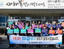 [ 한국미디어뉴스 이원영 기자 ] 대전 중구는 설 명절을 앞둔 9일 아침 출근길 구청사 현관 및 각 부서를 방문하여 음주운전 근절 및 청렴 문화 확산을 위한 청렴 캠페인을 전개했다고 밝혔다. 이번 캠페인에는 설 명절을 맞이하여 김제선 중구청장과 간부공무원, 대전중구공무원노동조합 임원진, 감사실 직원 등이 참여했다. 참여자들은 직원들을 대상으로 음주운전 근절 및 직무와 관련한 부정청탁·금품수수 주의 등의 내용이 담긴 청렴홍보지를 배부하고 ‘명절 선물 안주고 안받기! 음주운전 근절! 갑질OUT!’이라는 구호를 외치며 생활 속 청렴 실천 의지를 다졌다. 김제선 중구청장은 “명절 분위기에 편승한 불미스러운 사건이 발생하지 않도록 음주운전·갑질을 근절하고 선물 안 주고 안 받는 청렴문화 확산에 전 직원이 노력해 달라”고 당부했다. 아울러 중구는 설 명절 기간 공직 기강 확립을 위한 자체 감찰 활동을 강화하고 ‘청렴주의보’를 발령하는 등 공직사회 청렴문화 조성을 위해 지속적으로 노력하고 있다.