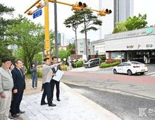 [ 한국미디어뉴스 이보영 기자 ] 울산 중구가 4월 23일 오전 8시 중구 유곡동 울산초교 교차로 일원에서 출퇴근 시간대 상습적인 교통체증 해소를 위해 추진 중인 ‘종가5길 우회전 차로 신설 공사’ 현장점검을 실시했다. 해당 구간은 울산초등학교 및 1,200세대 규모의 공동주택과 인접해 있는 데다 중구의 주요 간선도로인 종가로 합류 구간이라, 편도 1차로에 좌·우회전 차량이 혼재되면서 출퇴근 시간대마다 정체가 반복됐다. 이에 중구는 지난해 6월부터 우회전 전용차로를 설치하기 위해 울산시교육청과 부지 활용 관련 다각적인 협의를 거쳤고, 울산시교육청의 적극적인 부지 제공 협조가 이루어지면서 사업 추진이 본격화됐다. 중구는 특별조정교부금 4억 원을 투입해 울산시교육청 부지 일부를 보도로 활용하고, 기존 보도 폭 일부를 차로로 전환해 폭 3m, 연장 60m 규모의 우회전 전용차로를 신설했다. 해당 구간은 지난 4월 20일부터 임시 개통 상태로 운영 중이다. 이날 현장에는 김영길 중구청장과 관계 공무원, 울산시교육청 및 중부경찰서 관계자, 인근 지역 주민 등 11명이 참여해 교통 흐름(정체)