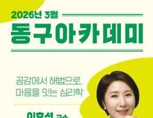 [ 한국미디어뉴스 이종철 기자 ] 광주 동구는 대표 평생학습 프로그램인 ‘2026년 동구 아카데미’가 오는 13일 이호선 숭실사이버대학교 교수의 강연을 시작으로 올해 첫 문을 연다고 밝혔다. 동구 아카데미는 지난 2007년 시작해 올해로 20년째를 맞은 동구 대표 교양 강좌로, 매년 다양한 분야의 전문가를 초청해 주민들에게 폭넓은 배움의 기회를 제공해 왔다. 인문·심리·예술·건강 등 생활 밀착형 주제를 다루며 주민들의 호응을 얻고 있다. 올해 첫 강연은 13일 오후 2시 동구청 6층 대회의실에서 열린다. tvN ‘이호선의 상담소’, ‘유 퀴즈 온 더 블록’ 등 방송을 통해 대중에게 친숙한 이호선 숭실사이버대학교 교수가 강단에 올라 ‘공감에서 해법으로, 마음을 잇는 심리학’을 주제로 특강을 진행한다. 이번 강연에서는 다양한 인간관계와 일상 속에서 마음을 돌보고 다스리는 방법을 심리학적 관점에서 풀어낼 예정이다. 이어 4월 10일에는 문요한 카운슬러가 ‘감정을 마주하면 길이 보인다’를 주제로 감정 이해와 회복에 대한 강연을, 5월 8일에는 방송인 김병조가 ‘행복의 비결은 웃음