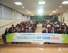 [ 한국미디어뉴스 이원영 기자 ] 오영훈 제주특별자치도지사는 26일 서귀포산업과학고등학교를 찾아 1, 2학년 학생 약 100명을 대상으로 특별강연을 열고 제주의 미래 신산업 비전을 제시했다. ‘청소년들과 함께 제주 미래를 꿈꾸다’를 주제로 진행된 이날 강연은 2024년 표선고, 한림공고, 한국국제학교(KIS)를 거쳐 올해 제주중앙고, 중문고, 남원중에 이어 일곱 번째로 마련됐다. 오 지사는 “서귀포산업과학고는 대한민국에서 태평양에 가장 가까운 고등학교”라며 “동남아시아, 태평양, 미주로 나가는 첫 번째 길목에서 미래를 준비해야 한다”고 말했다. 이어 학교급식비 인상, 청소년 버스요금 무료, 학교안전경찰관 배치 등 학생들의 실생활을 지원하는 정책을 소개하고, ‘2035 탄소중립 제주’ 목표도 설명했다. 오 지사는 “제주도가 2050년 국가 목표보다 15년 앞선 2035년 탄소중립을 선언한 이유는 기후위기가 제주부터 먼저 오기 때문”이라며 “재생에너지 발전 비율을 7기가와트 수준으로 높이고 그린수소를 연간 6만톤 생산할 계획”이라고 밝혔다. 특히 서귀포산업과학고를 에너지 분야 제주형 협약