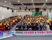[ 한국미디어뉴스 김풍옥 기자 ] 증평군자원봉사종합센터(대표 김남순)가 29일 증평군립도서관 다목적 홀에서 ‘2026년 자원봉사 릴레이 발대식’을 개최하고, 2026년 자원봉사활동의 본격적인 시작을 알렸다. 이날 행사에는 이재영 군수를 비롯한 내빈들과 릴레이 참가 20개 단체 회원 100여 명이 참석한 가운데 자원봉사센터 2026년 사업계획 설명과 함께 릴레이 기(旗) 전달식이 진행됐다. ‘자원봉사 릴레이’는 참가단체가 각 단체의 전문성을 살려 정해진 기간 집중적으로 자원봉사활동을 실시하고, 활동 종료 후 다음 단체에 ‘릴레이 기(旗)’를 전달하는 방식으로 운영된다. 특히 올해는 단체별 봉사활동 1건과 함께 ‘버스 정거장 환경정화’ 활동을 추가로 실시함으로써 지난해보다 활동 영역을 확장하고 자원봉사 참여 확산을 도모할 계획이다. 올해 첫 활동은 2월 ‘맑은물지킴이봉사회(회장 이화복)’를 시작으로, 12월까지 이어질 예정이다. 김남순 센터장은 기념사에서 “각 단체가 릴레이를 무사히 완주할 수 있도록 자원봉사종합센터가 페이스메이커 역할을 제대로 수행하겠다”며 참여한 단체에 고마움을 전했다