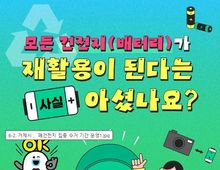 [ 한국미디어뉴스 이원영 기자 ] 최근 배터리로 인한 화재와 폭발 사고가 증가하고 있는 가운데, 거제시는 폐건전지를 안전하게 수거하고 폐건전지 수거율을 높이기 위해 오는 11월3일부터 11월 28일까지 한 달 동안 폐건전지 집중 수거 기간을 운영한다고 밝혔다. 이번 집중 수거는 학교, 어린이집(유치원), 공공기관과 공동주택 등을 대상으로 진행되며, 공공기관과 공동주택의 수거요청이 있을 때 폐건전지 전담 수거 인력 또는 대행업체에서 직접 방문해 수거하는 방식으로 진행될 예정이다. 수거는 약 3주간 한시적으로 운영되며, 수거된 폐건전지는 재활용 업체에 전달되어 새로운 자원으로 재탄생하게 된다. 시는 이번 사업으로 폐건전지 수거율을 높이는 것뿐만 아니라, 폐건전지로 인한 화재나 폭발 등의 안전사고를 예방하는 데도 도움이 될 것으로 기대한다고 전했다. 또한 거제시는 폐건전지 집중 수거뿐만 아니라 재활용 가능자원(종이팩, 폐건전지, 투명페트병)을 모아오면 종량제봉투로 교환해주는 재활용품 교환사업도 추진하고 있어, 고품질 재활용품의 재활용률을 높이는데 기여하고 있다. 주정운 환경녹지국장은 “생활