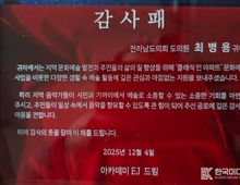 [ 한국미디어뉴스 이종철 기자 ] 전라남도의회 최병용 의원(여수5, 더불어민주당)이 지역 문화예술 발전과 주민 삶의 질 향상에 기여한 공로를 인정받아 지난 4일 지역 예술교육 기관인 ‘아카데미 EJ(대표 이은주)’로부터 감사패를 수상했다. 이번 수상은 최병용 의원이 평소 ‘생활 속 문화예술’ 실현을 위해 주민들의 일상 속 다양한 예술 활동에 깊은 관심을 기울이고 아낌없는 지원을 이어온 결과다. 특히 최병용 의원이 주력해 온 ‘클래식 인 아파트’ 사업은 공연장을 찾기 힘든 주민들을 위해 아파트 단지 등 생활 공간을 문화 예술의 장으로 탈바꿈시킨 사례로 주민들의 문화적 갈증을 해소하고 정서적 만족도를 높이는 등 도농 복합 도시의 모범적인 문화 모델을 제시했다는 평가를 받고 있다. 최병용 의원은 “이번 감사패는 척박한 환경에서도 예술혼을 지키는 지역 예술인들과 문화를 사랑하는 여수 시민들이 주신 상이라 더욱 뜻깊다”라고 소감을 전하며, “앞으로도 주민들이 집 문을 열면 바로 문화예술을 만날 수 있도록 ‘문화가 흐르는 전남’을 만들기 위해 최선을 다하겠다”라고 의지를 밝혔다. 한편, 최병용 의원은 지난